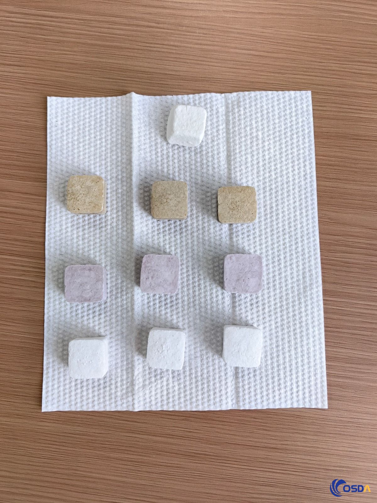 Unlike dense coconut candies or chewy dried coconut pieces, these cubes feel incredibly light. When you bite into one, the crisp exterior quickly dissolves, releasing a burst of coconut flavor. It’s an experience that combines the satisfying crunch of a snack with the melt-in-the-mouth sensation of a delicate dessert.